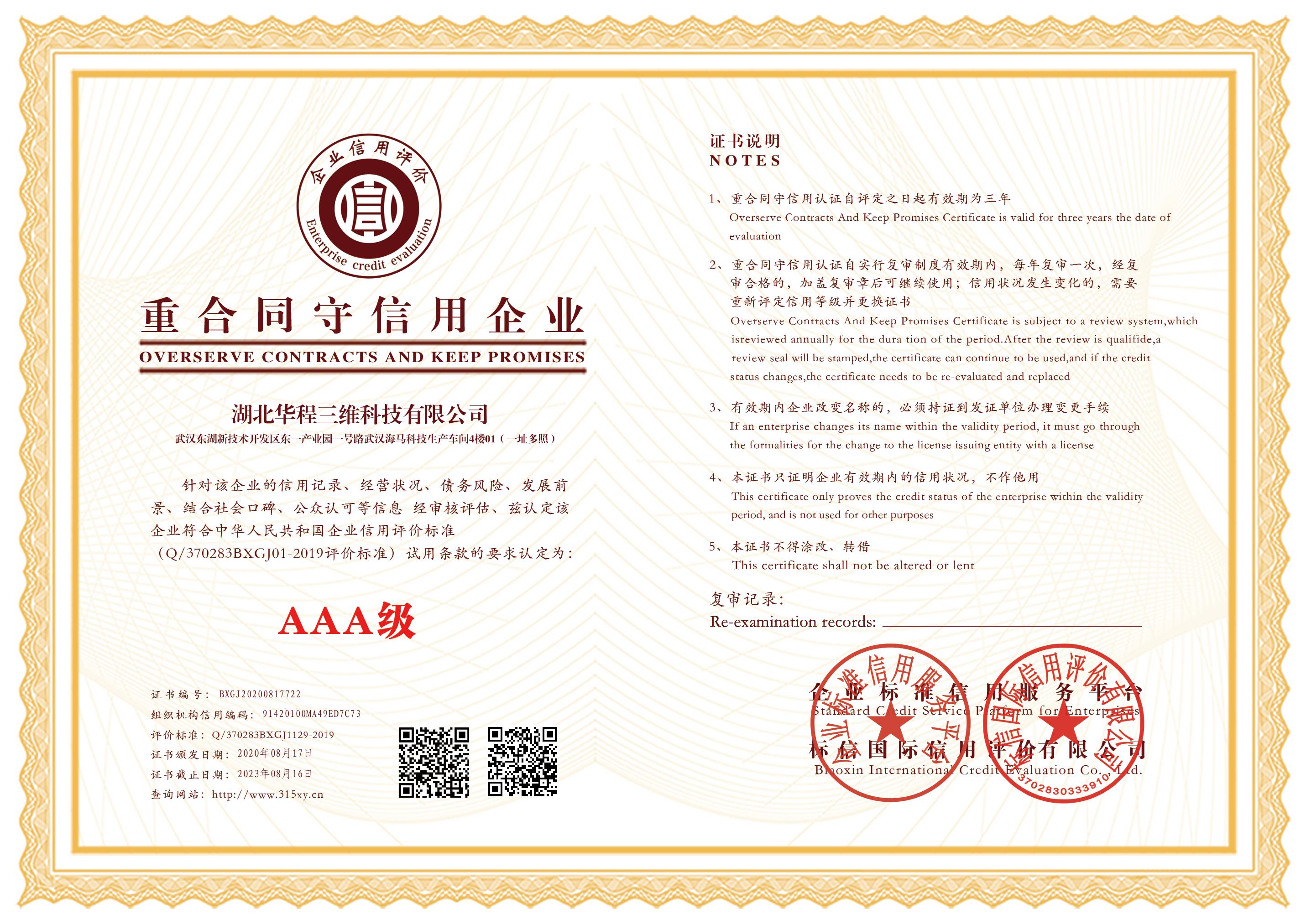 重合同守信用企业