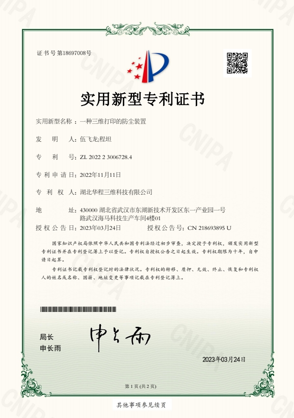 一种三维打印的防尘装置